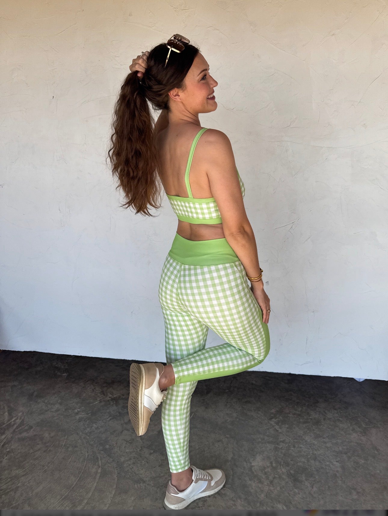 Introducing our ON THE GO LEGGINGS, the perfect addition to your spring and summer wardrobe. Crafted from premium stretchy spandex, these leggings offer exceptional flexibility and comfort for all-day wear. Waistline features a flattering criss-cross front waist band with contrast color side panel.